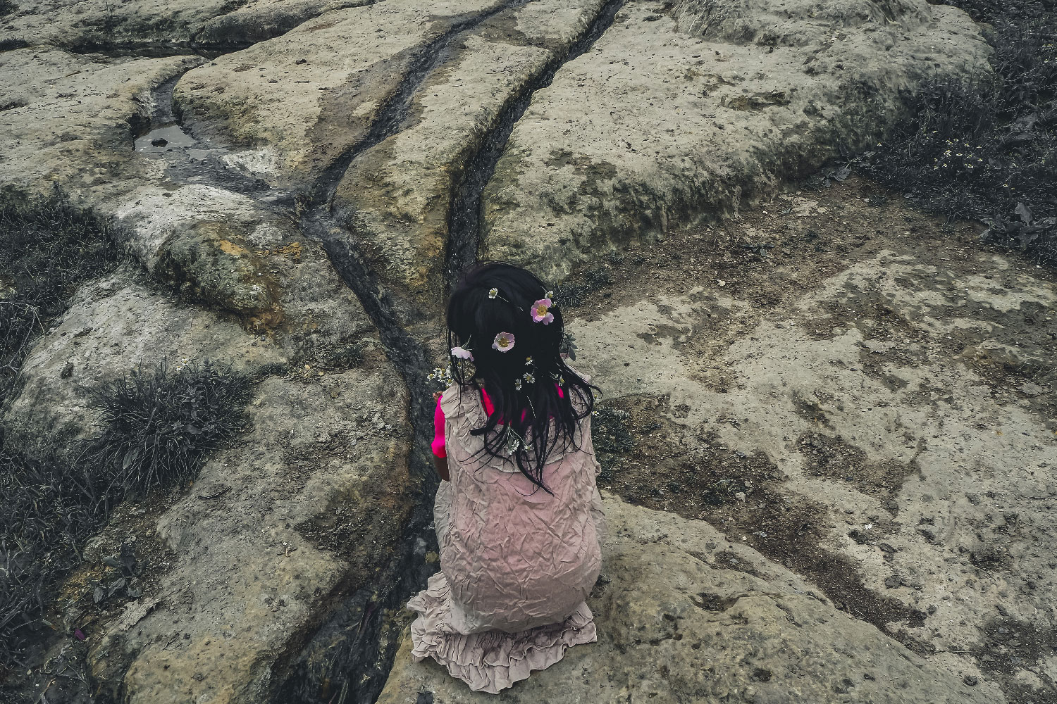 Thresholds presents a continuous visualization of images that blend, a “glissando” over different layers exploring elements of memory. Each layer is marked by a threshold I have crossed during my investigative photographic quest: initially from the outside of people’s homes into their privacy, then from the bare lands' solitude to the animated play of the children, and lastly from digital images to polaroid images that explore my dreams, and nostalgia about the ephemeral childhood. Like the fragments of memories, each of the layers presents a discrete visualization of images, each one speaking by itself.